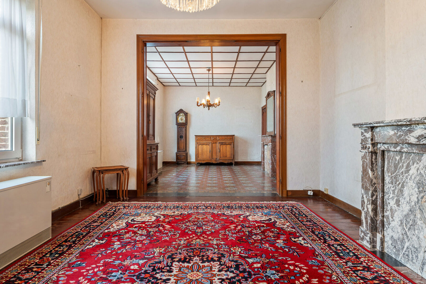 L’agencement de cette propriété prestigieuse, caractérisée par de nombreux éléments authentiques tels que des cheminées en marbre, des sols anciens et une hauteur sous plafond exceptionnelle de 3,20 m, se présente comme suit: