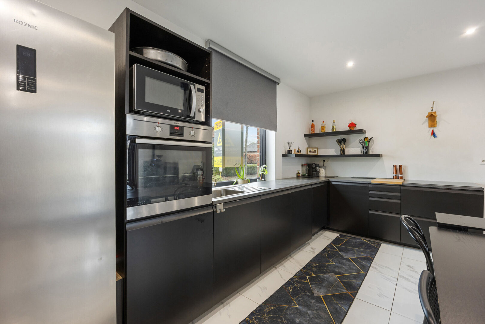 -De ruime ingedeelde leefruimte (48,01m2) met zicht op de tuin biedt plaats voor de open keuken en woonkamer met eethoek. De moderne keuken is voorzien van hedendaags comfort en uitgerust met inductie kooplaat, oven en vaatwasser.