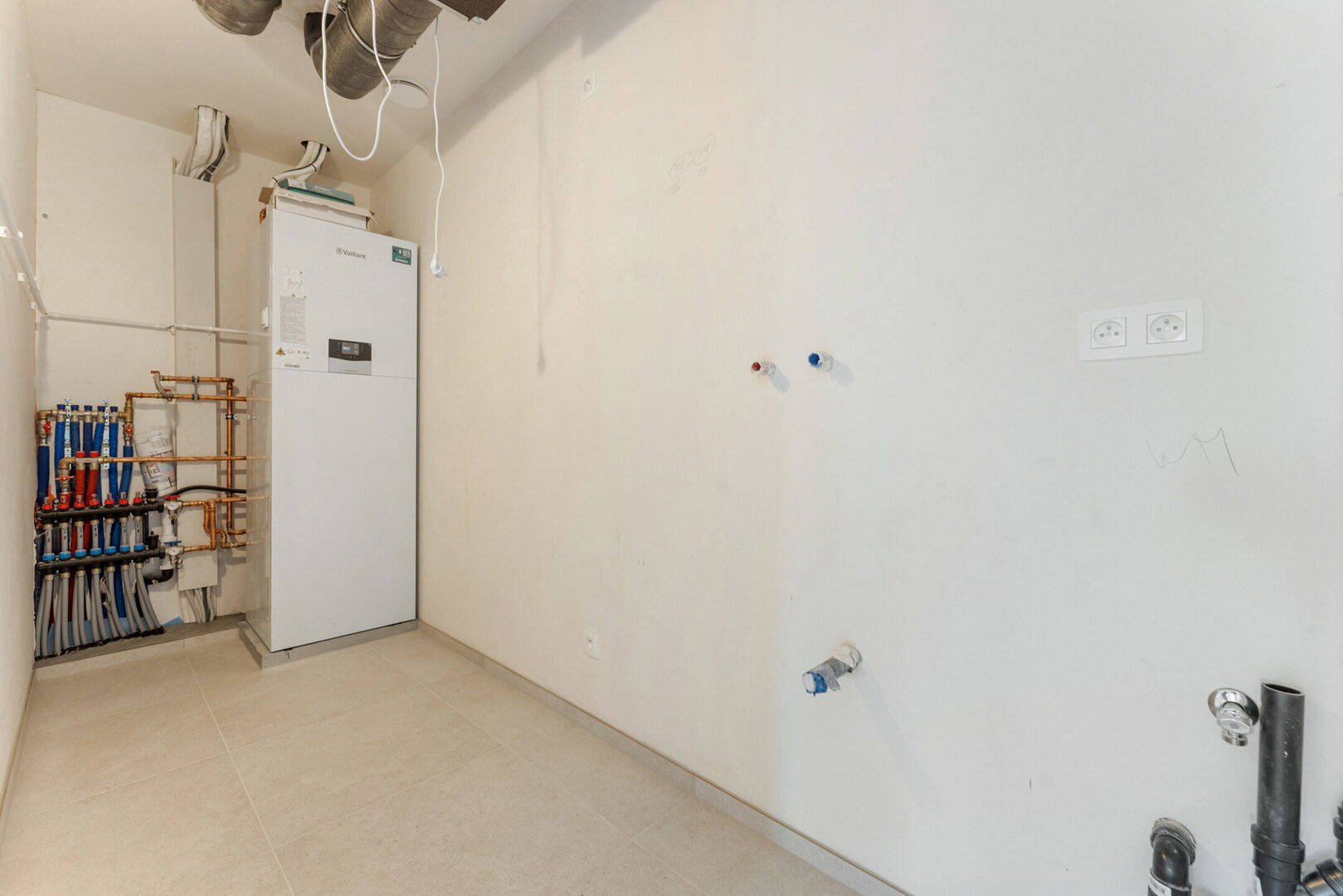 -Technische ruimte die evenzeer dienst doet als ruime berging met aansluiting voor de wasmachine.