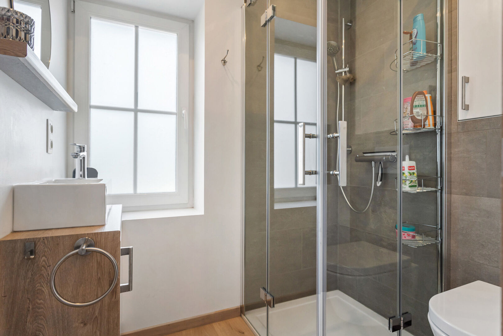 -2de badkamer met douche, lavabo en bijkomend toilet.