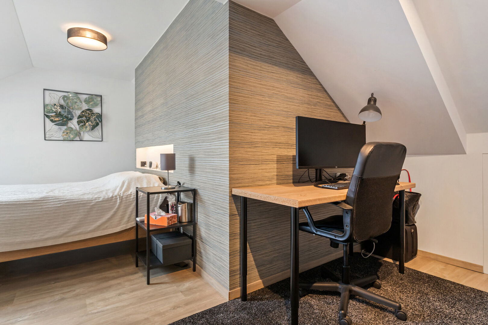 -Master bedroom (20,16m2) met achtergelegen maatwerkkasten, plaats voor bureel en verrassend veel verscholen opbergruimte.