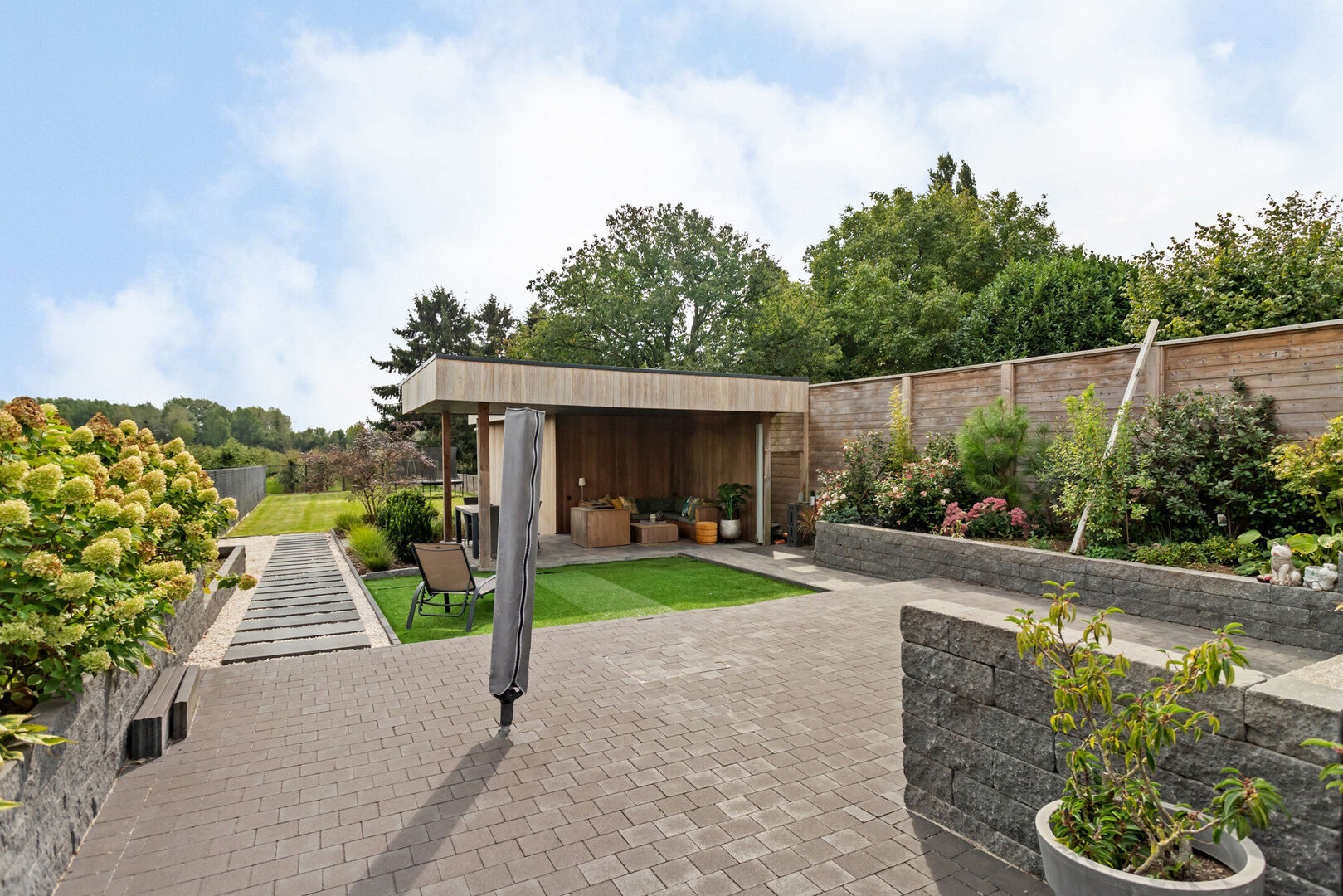 -De smaakvol aangelegde, zuid georiënteerde tuin geniet van allerlei troeven zoals het overdekt terras (16,39m2) met volledig geïsoleerde tuinberging (18,96m2) afgewerkt in Thermowood en een gemakkelijke achteringang. Daarnaast is de ruime, naastgelegen oprit met poort een extra pluspunt.