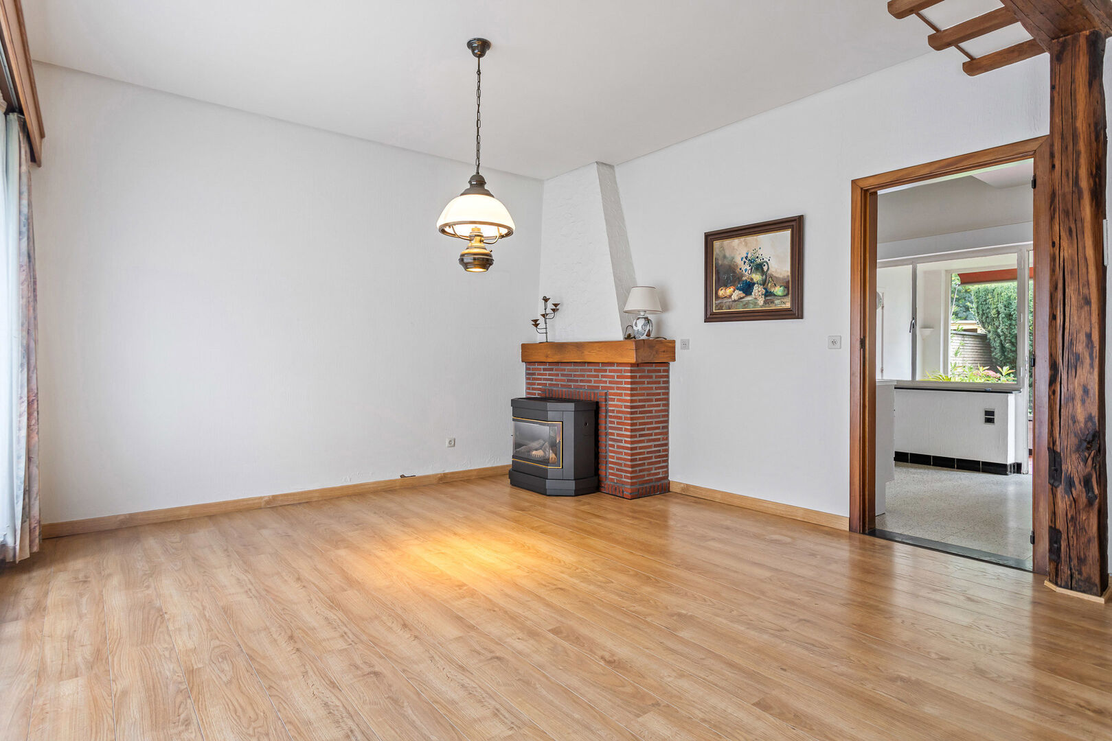 -Lichtrijke woonkamer (31m2) met gaskachels, gekenmerkt door riante raampartijen en authentieke balkenstructuur.