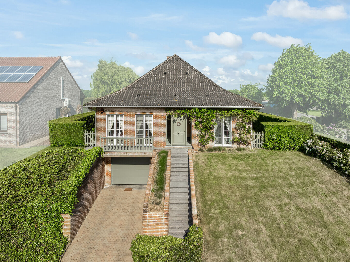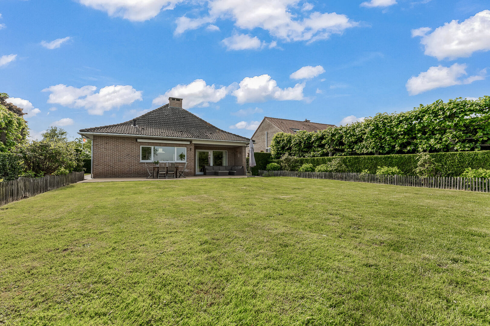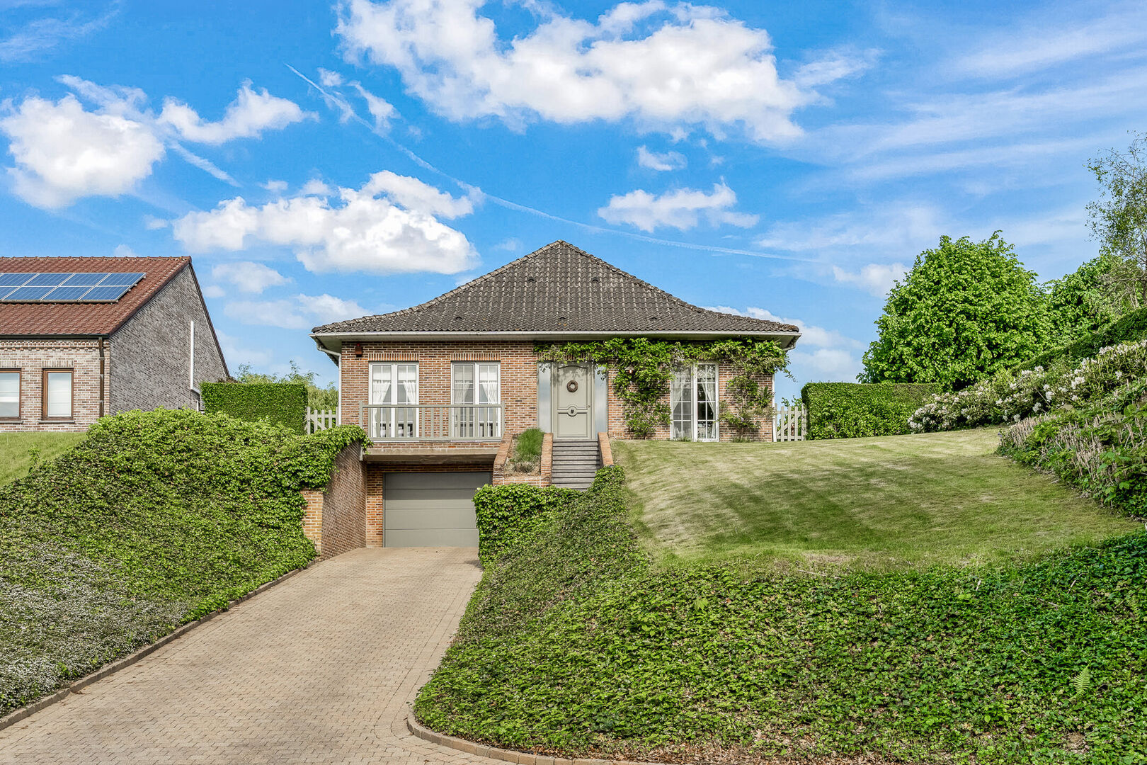 -De prachtig gelegen woonst geniet van een rustgevende tuin met 100% privacy, een oostelijke oriƫntatie en is een ware troef. Dankzij het hoger gelegen perceel geniet je hier van een uitzonderlijk verzicht over de achtergelegen velden en landschappen. Dit uitzicht blijft je telkens opnieuw verbazen, ook vanop het overdekt terras (8,86m2). Tot slot beschik je ook over een uitgestrekte oprit en voorliggende parkeerplaats voor 3 wagens.