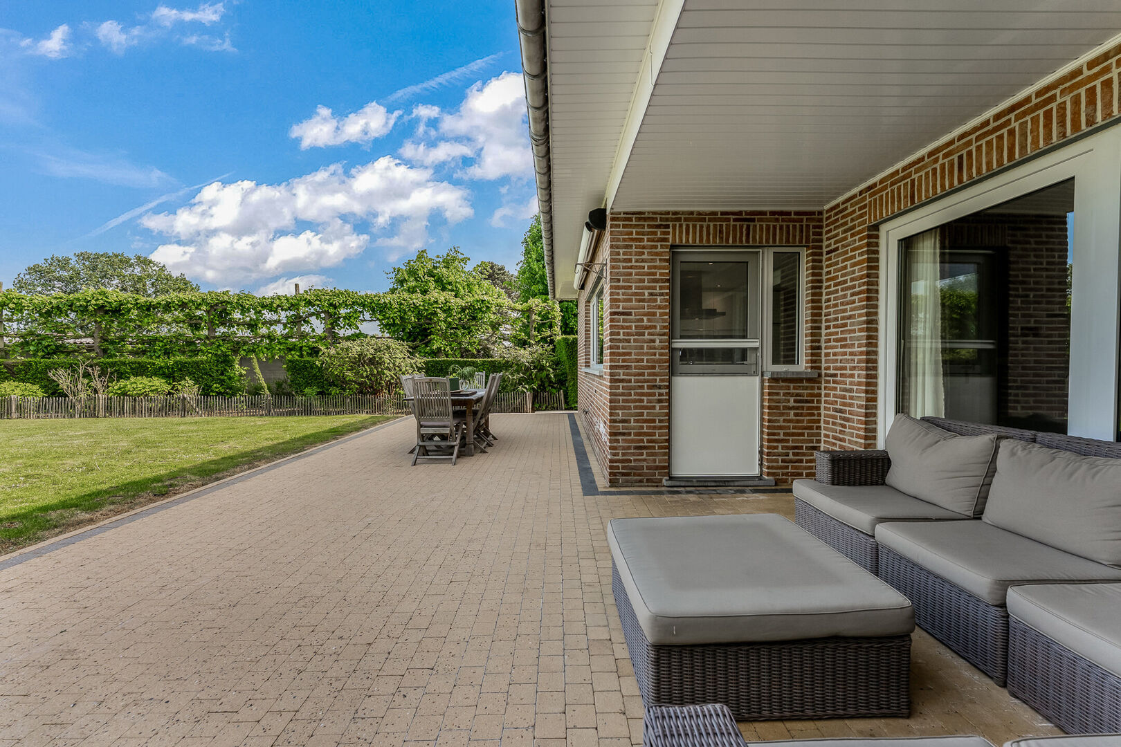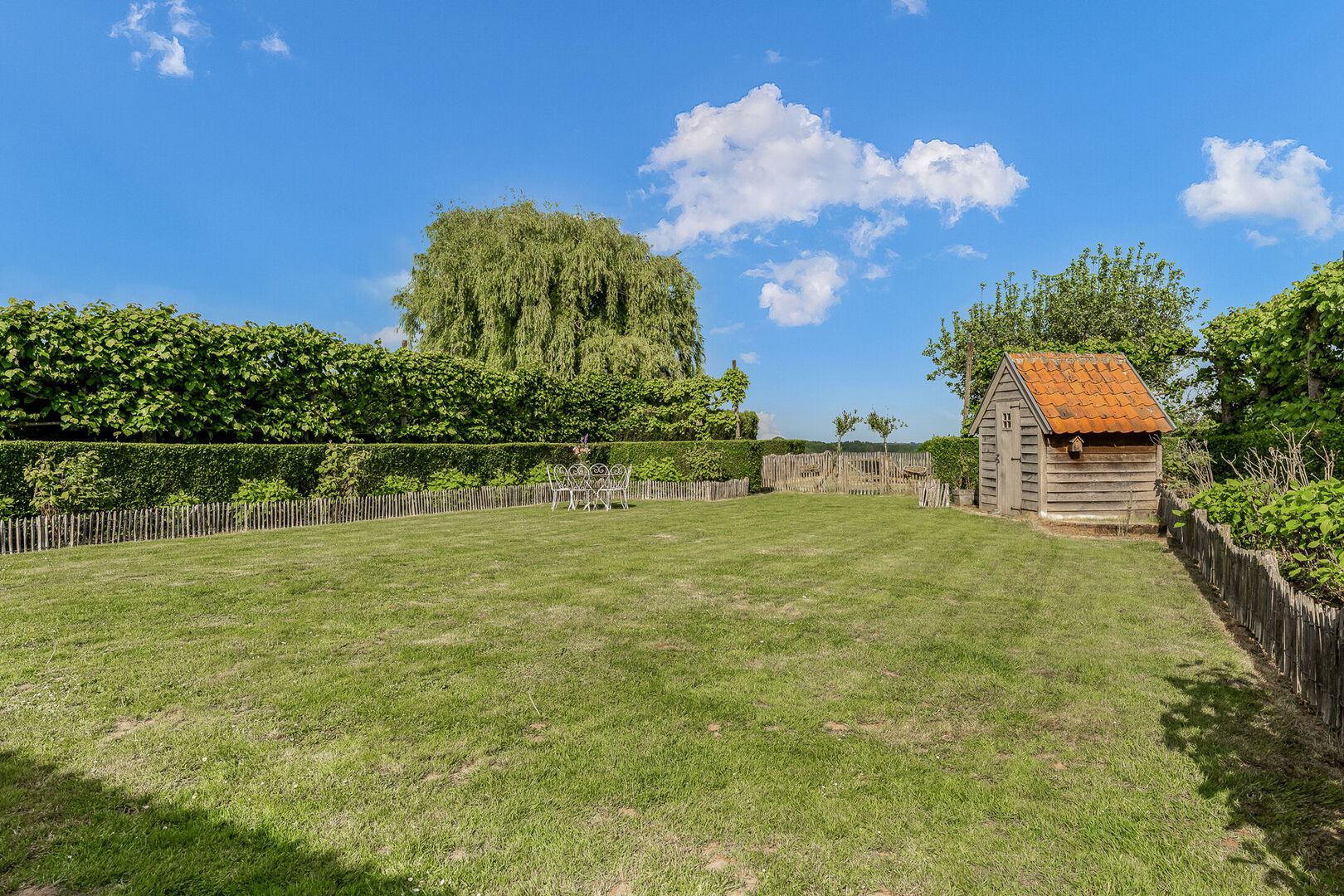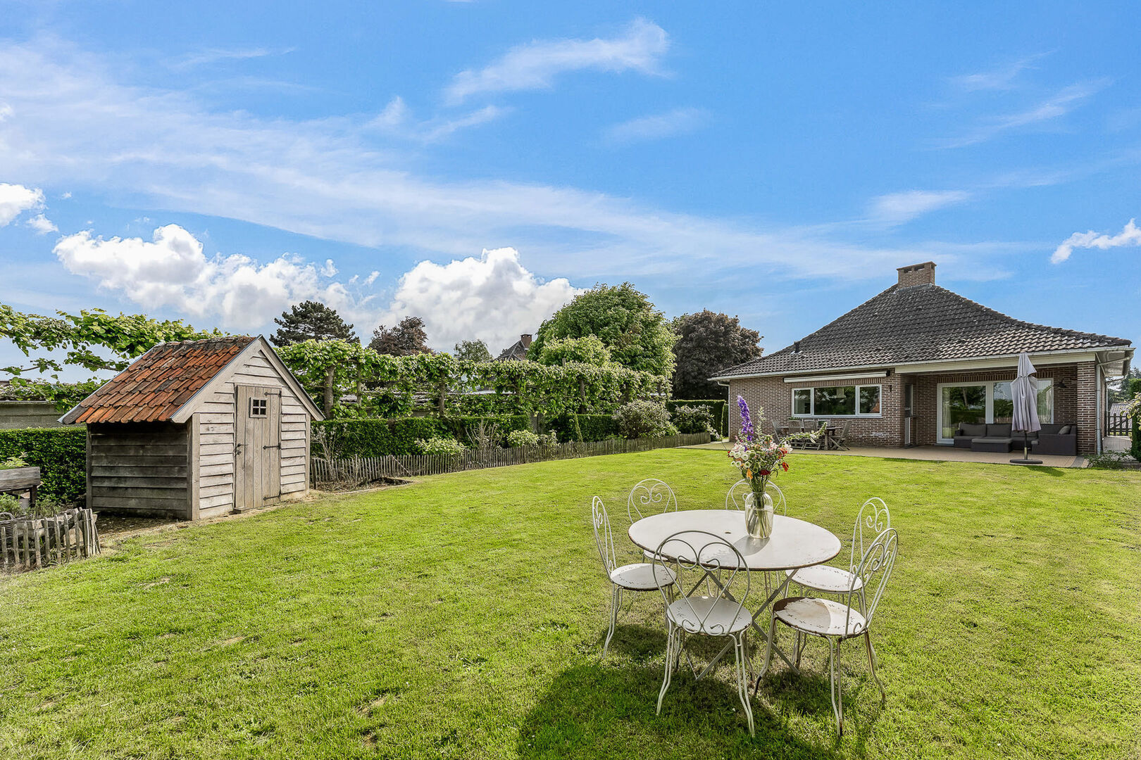 -De prachtig gelegen woonst geniet van een rustgevende tuin met 100% privacy, een oostelijke oriƫntatie en is een ware troef. Dankzij het hoger gelegen perceel geniet je hier van een uitzonderlijk verzicht over de achtergelegen velden en landschappen. Dit uitzicht blijft je telkens opnieuw verbazen, ook vanop het overdekt terras (8,86m2). Tot slot beschik je ook over een uitgestrekte oprit en voorliggende parkeerplaats voor 3 wagens.