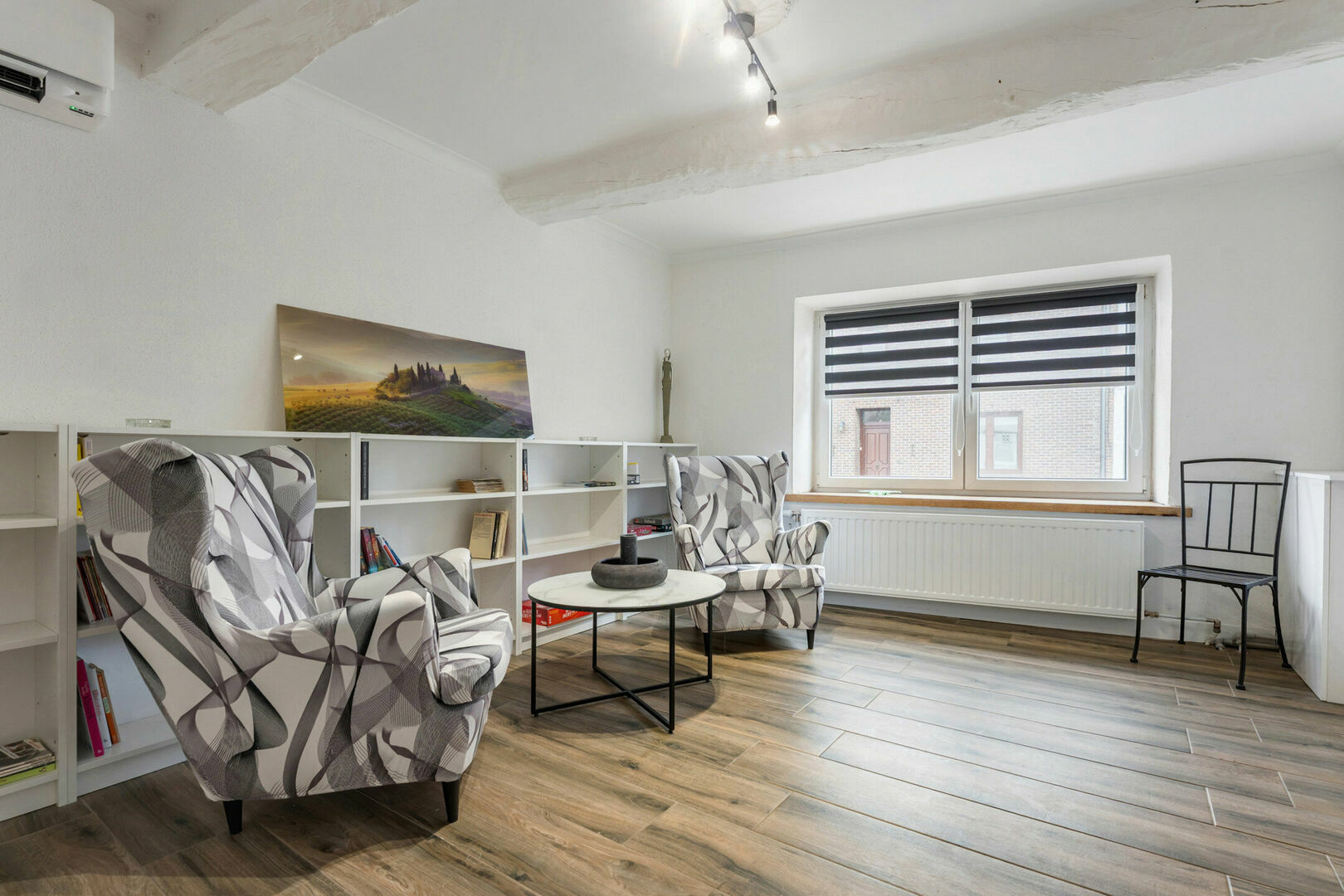 -Gezellige woonkamer (tot. opp. 32,61m2) openlijk onderverdeeld in voorkamer en living.