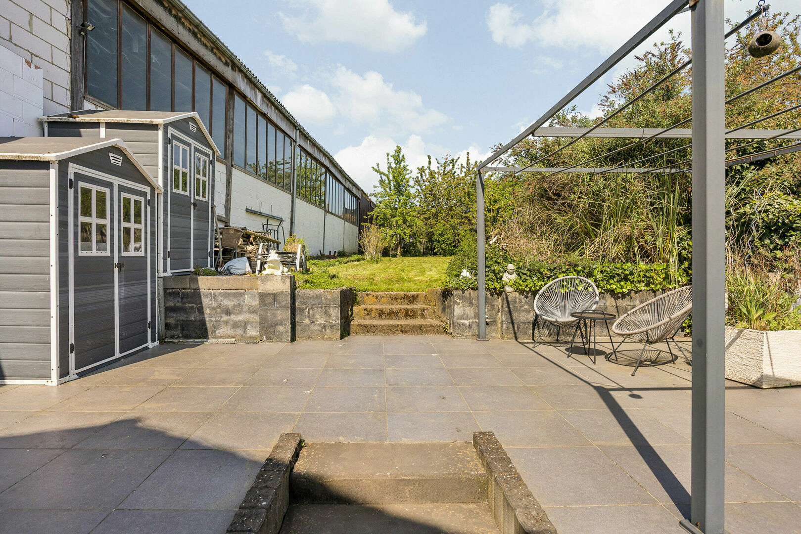 -Achteraan in de tuin geniet je in alle rust van gezellige zithoeken.