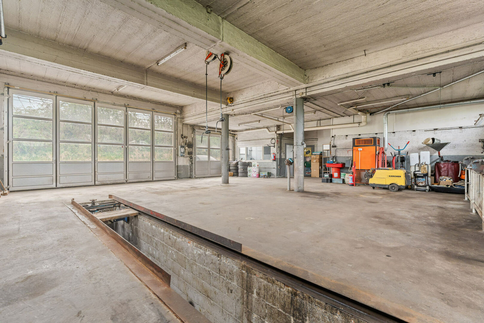 -Garage/werkplaats (162m2) met smeerput en een grote poort (H: 3,85 B: 3,50m) die volledig in één geheel geopend kan worden.
