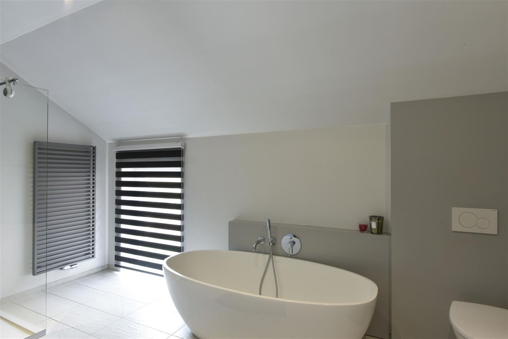 - Badkamer uitgerust met inloopdouche, ligbad, dubbele lavabo met wandmeubel en toilet.