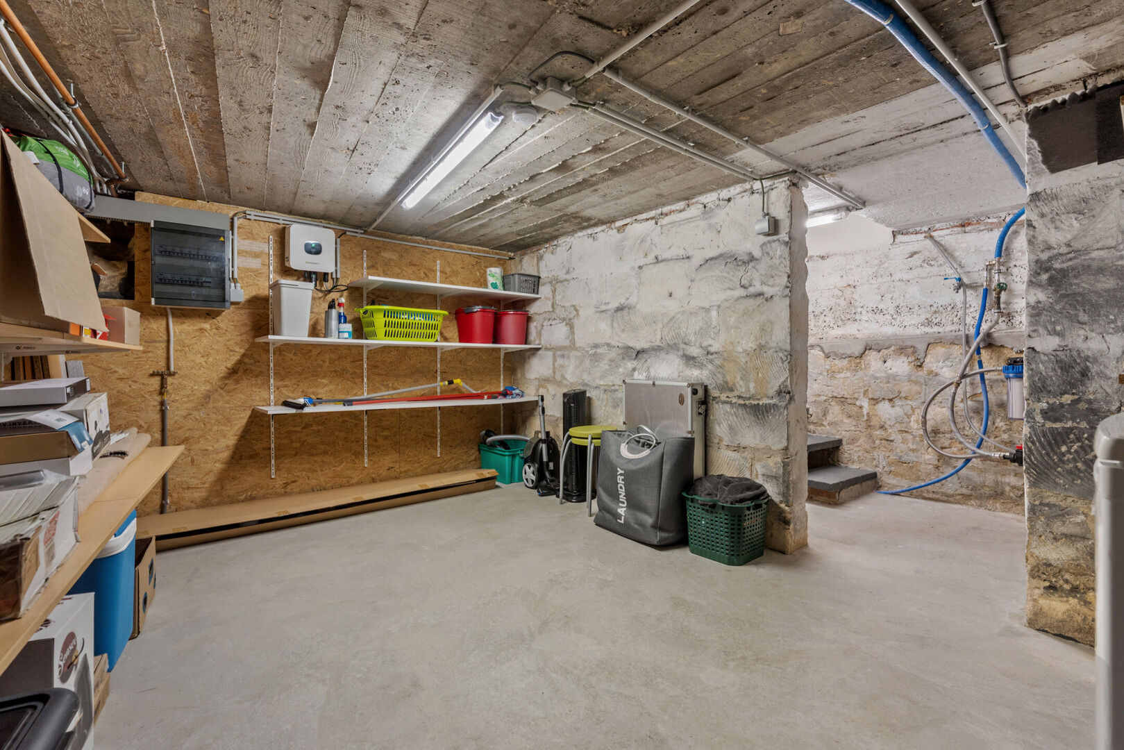 - Afgewerkte kelder (20,70m2) onderverdeeld in twee aparte ruimtes, ideaal voor extra opslagmogelijkheden.