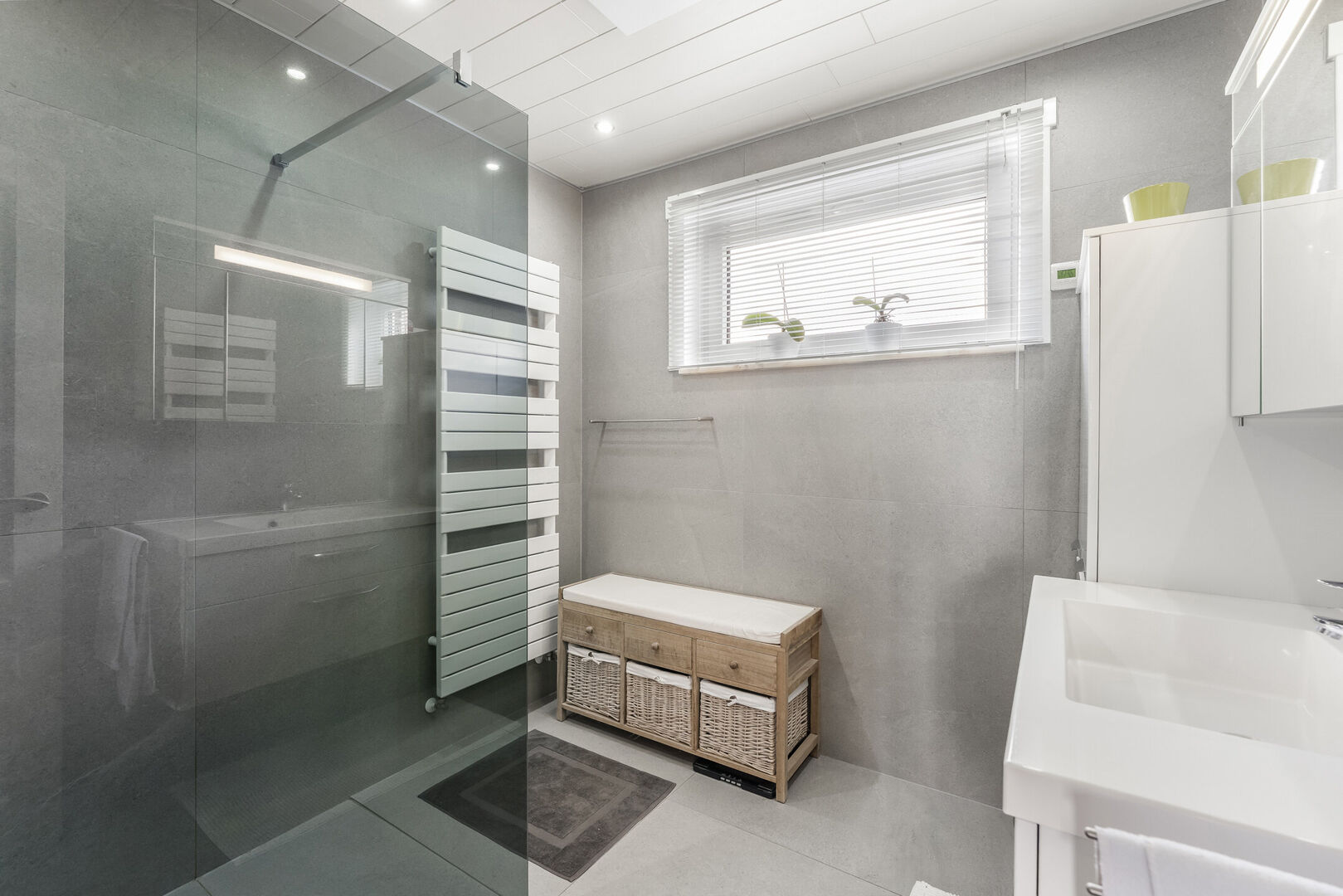 -Smaakvolle badkamer (6,5m2) uitgerust met inloopdouche en wandmeubel met lavabo.