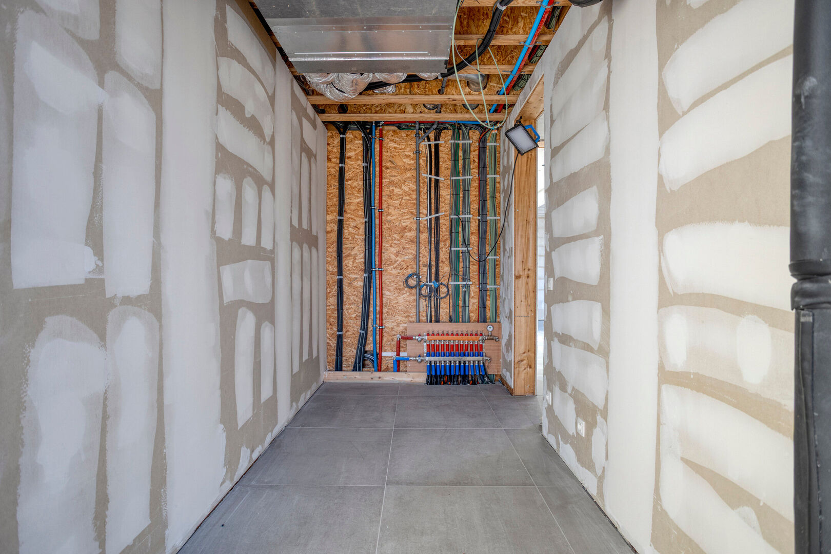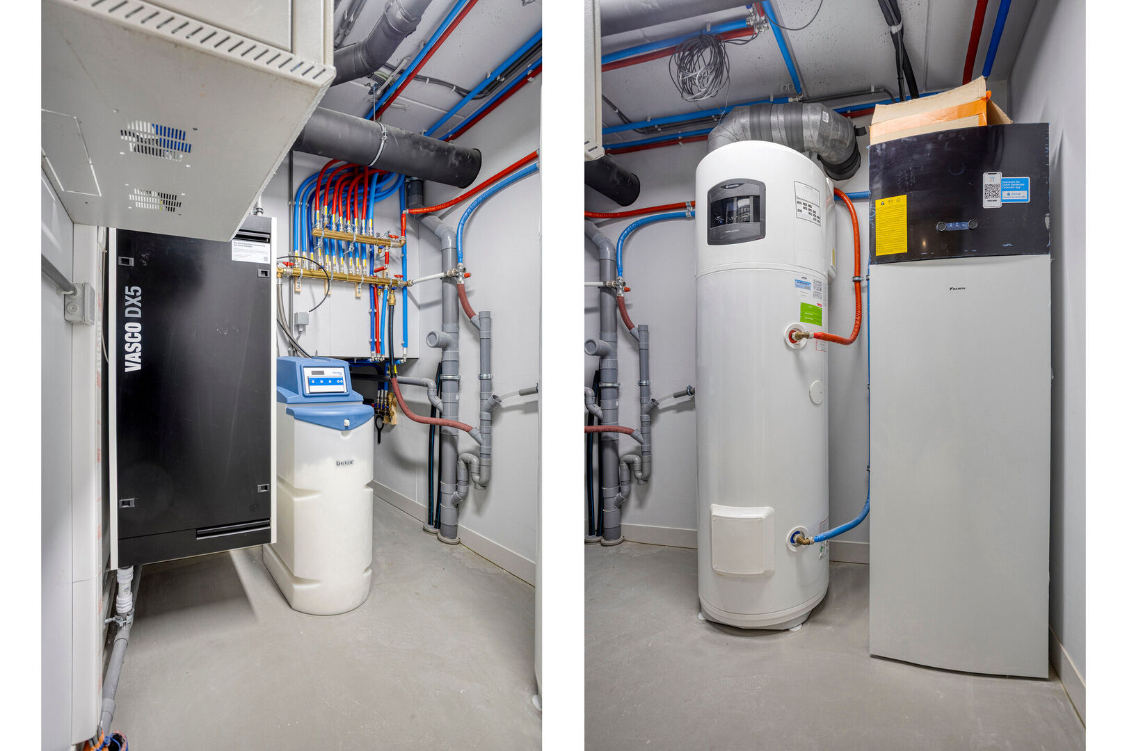 -Technische ruimte (5m2) met warmtepomp, warmtepompboiler, waterverzachter, regenwaterpomp en ventilatiegroep.