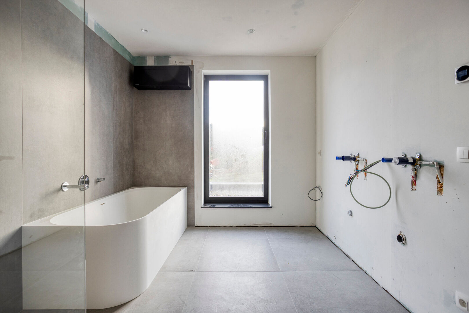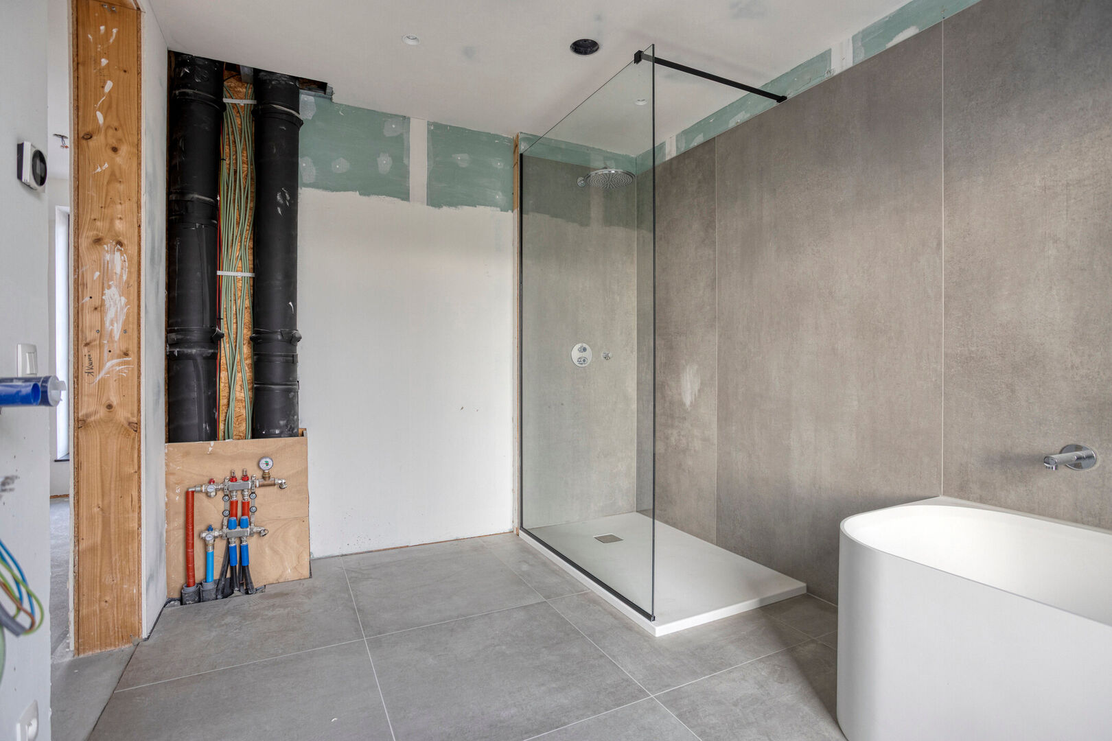 -Hoogwaardig afgewerkte badkamer (10m2) met inloopdouche, ligbad en een wandmeubel met dubbele wastafel. Kraanwerk en opbouwwaskommen zijn aanwezig.